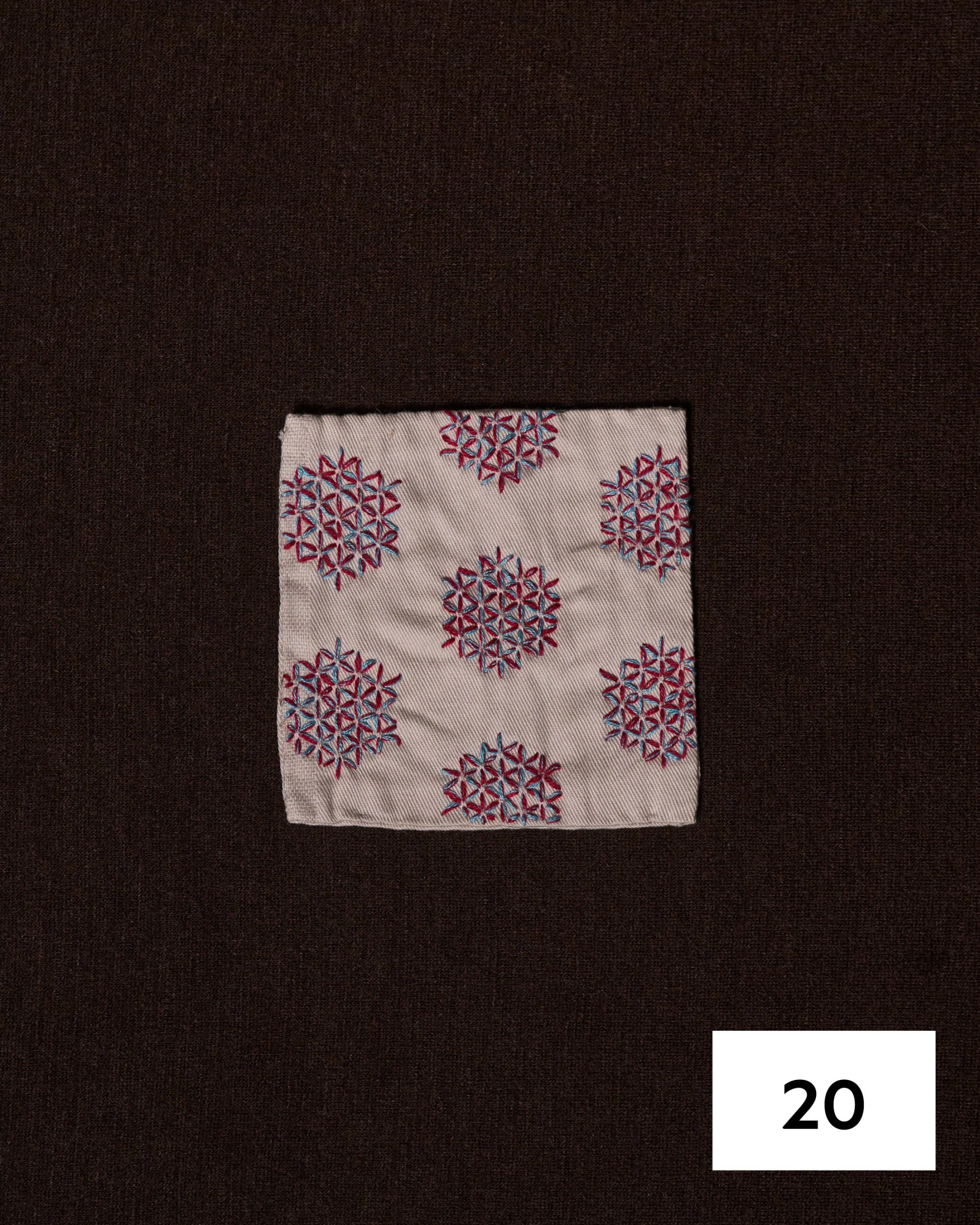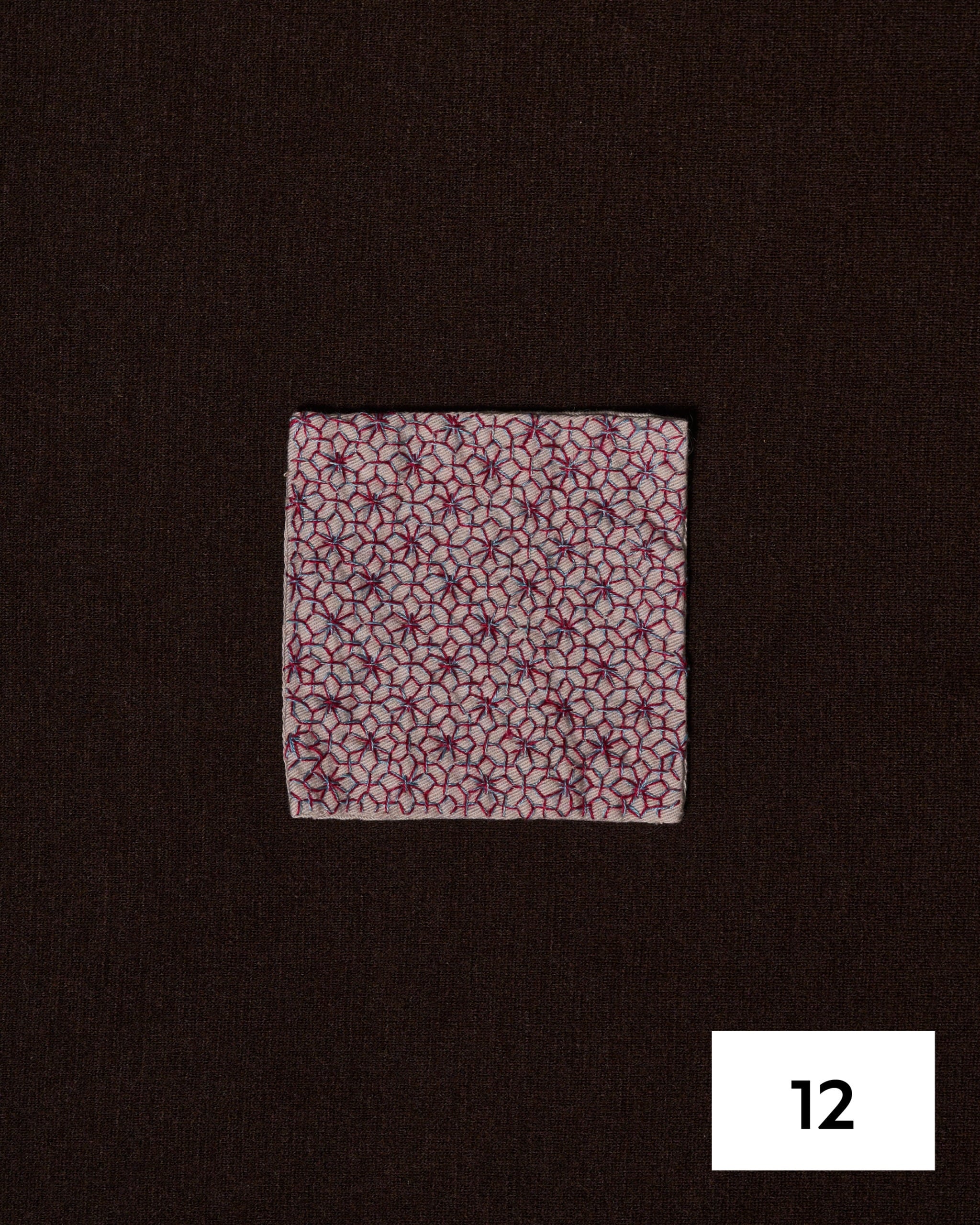 刺し子に使う複数の糸を撚り合わせずに一本の糸のようにして、独特の風合いや見た目を楽しむ刺し子技法である【引き揃え】という手法で作られており、単一の糸では出せない個性的な仕上がりが特徴です。