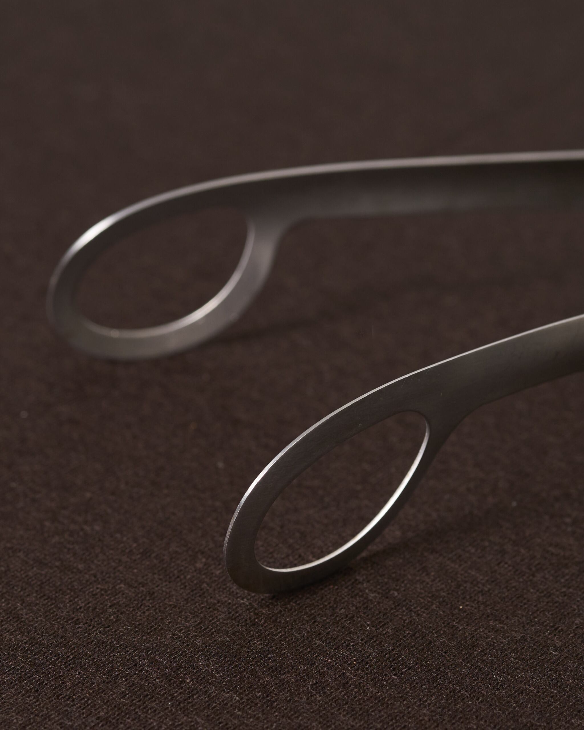 「あげものトング」は揚げ物の調理・盛り付けを快適にすることを目的に設計されたステンレス製キッチンツールです。掴む部分には大きな穴が設けられており、余分な油が自然に切れやすく、軽く持ち上げるだけで油が落ちやすくなっているのが特徴です。